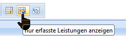 Mit Hilfe des Buttons können Sie die Ansicht auf die erfassten Leistungszeilen reduzieren. Somit sehen Sie nur die Leistungszeilen, zu denen Sie in der gewählten Erfassung Mengen eingetragen haben. Leistungszeilen mit der Menge = 0 werden ausgeblendet. Die Darstellung wird dadurch übersichtlich auf das Notwendigste reduziert.