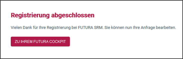 Mit dem Button “Passwort ändern und Registrierung abschließen” schließen Sie Ihre Registrierung ab und gelangen in Ihrem persönlichen Zugang von FUTURA.