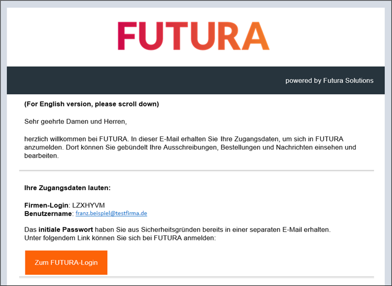 Betreff „FUTURA - Ihre Zugangsdaten / Your login details“