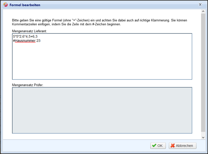 Abb.: Dialogfenster zur Pflege einer Formel