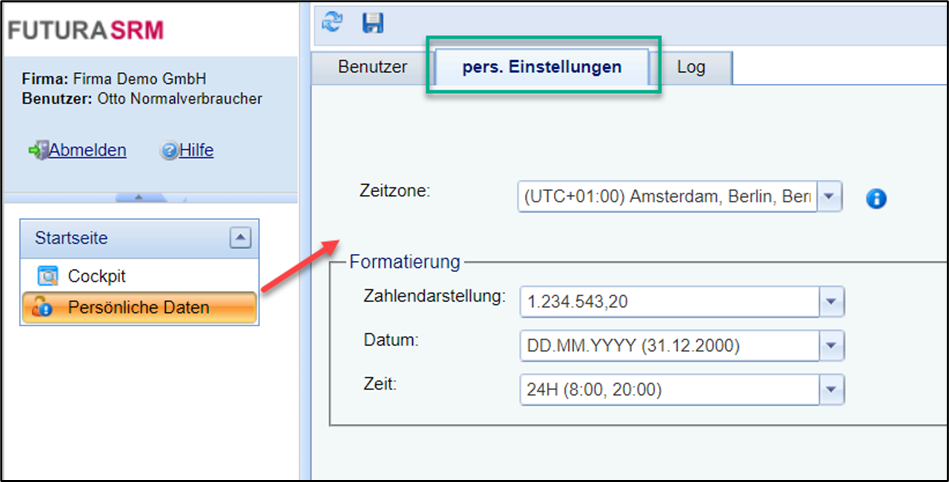 Formatierung (Zahlendarstellung, Datum und Zeit): Diese persönlichen Einstellungen steuern in Ihrem Zugang die Formatierung (Datum, Zeit, Zahlendarstellung) bei der Anzeige in der GUI aber auch welche Formatierung beim Export der Excel und PDF Dateien (z.B. LV, LERF) und beim Import von LVs (Excel) relevant ist.