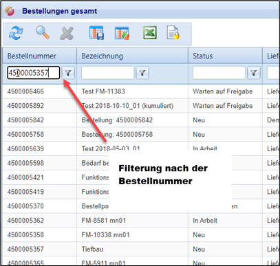 Nach mehreren Textfragmenten filtern/suchen | auch eine Suche nach mehreren Textfragmenten in einer Spalte ist möglich. Die Textfragmente müssen dabei durch Sternchen (*) voneinander getrennt sein. In der folgenden Abbildung sehen Sie ein Beispiel für eine Suche nach zwei Textbegriffen: ![]() |