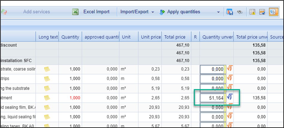 The entry of quantities for service entries must be made either cumulatively or non-cumulative. This is a default setting that the purchaser specifies in the order. The rules for both variants can be found here: Applied rules in the service entry process