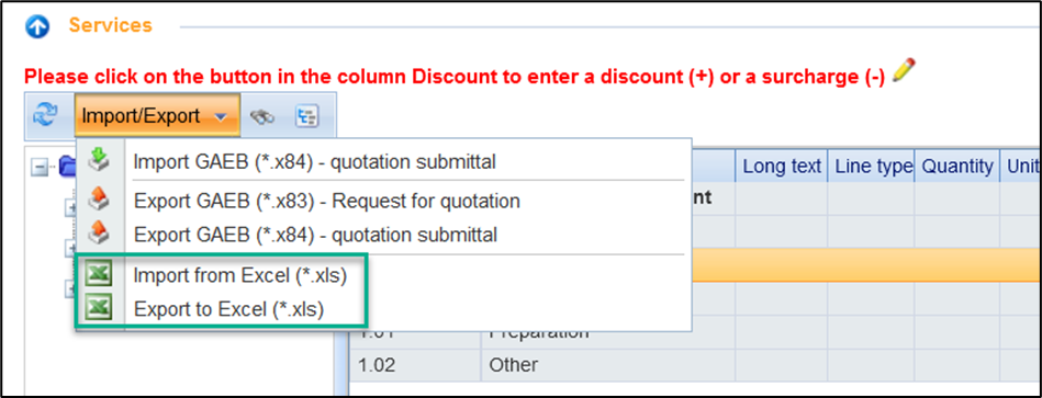 You can export the items list in Excel format to maintain prices in Excel. For items list with LOTs, they are exported completely and as an Excel file. You can then import the priced Excel file into your listing.