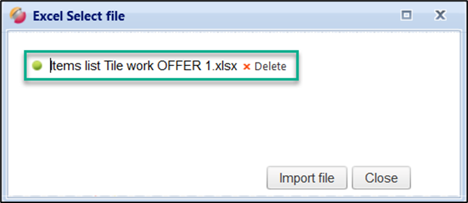 After selecting the file, it is displayed in the window. Click Import to read the prices.
