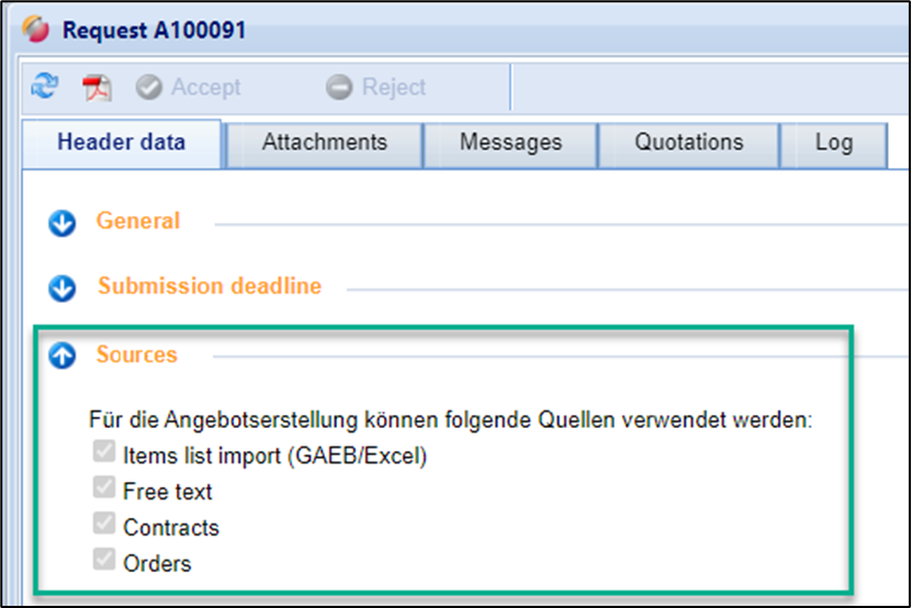 In contrast to the classic RFQ, this type of request only has the items list from the purchaser optionally available for the creation of the quotation. It is therefore not mandatory to use it.