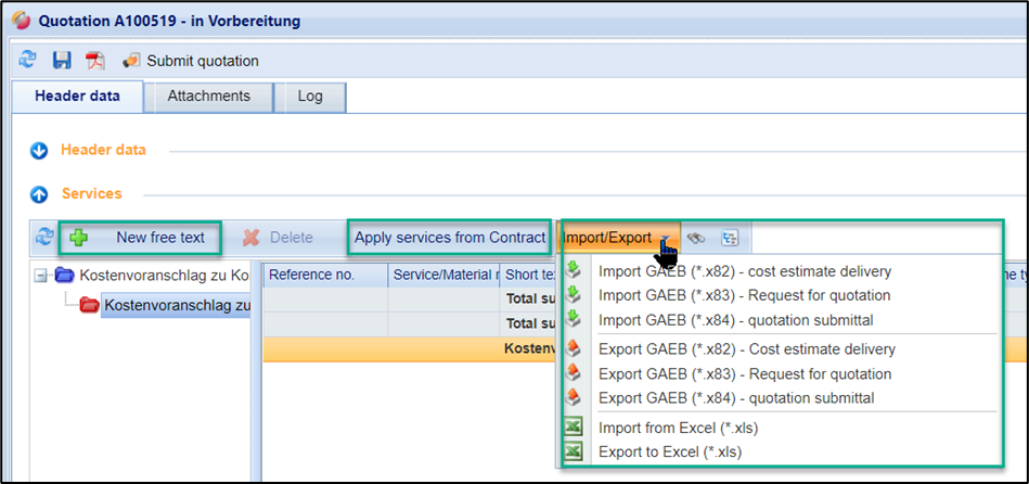 Items list import via GAEB and Excel file