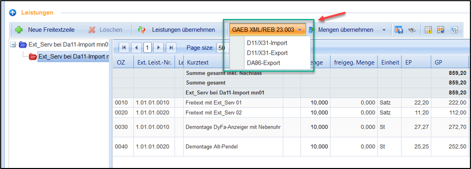 If the main order consists of an Items list with lots and thus of several red folders (per lot 1 red folder), this will be exported as a whole Items list and thus as an X86. The DA11 or X31 measurement file can thus be created on it and imported to the main job. Addendum items cannot be represented as lot LVs. This possibility can therefore only occur in the main order.