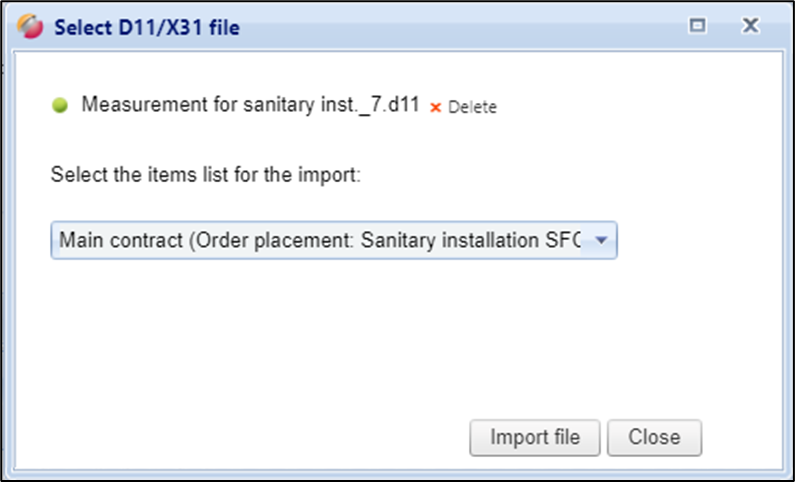 A DA11 or X31 measurement file can be imported for each order line (main order and addendum items).