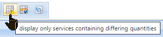 With the help of the button , you can reduce the service entry to services for which the approver verified quantity (quantity checked) differs from your entered quantity (quantity unverified). If you click on the button, only the deviating services will be displayed. As long as you do not press the button again, the filtering is retained.