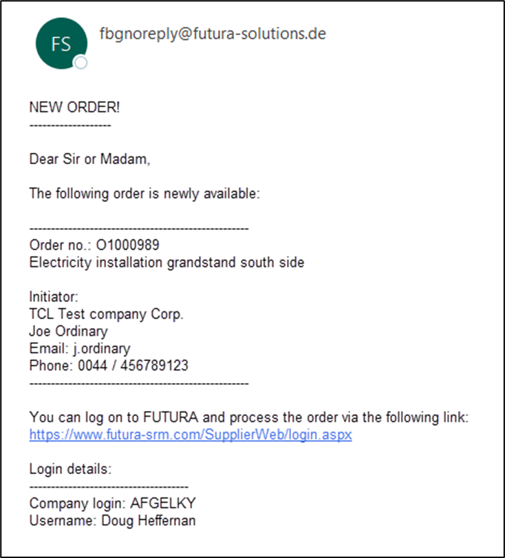 Example of a notification for a new order:
