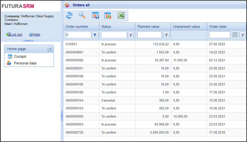 For each new order you will automatically receive information by e-mail. This also includes the access data for the access where you can find the order and create your service entry and send it to the auditor.