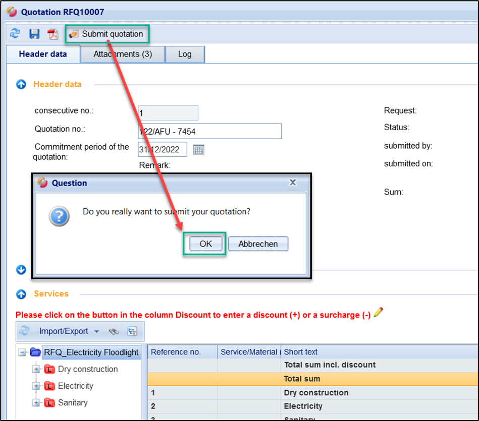 Click on the button "Submit quotation".