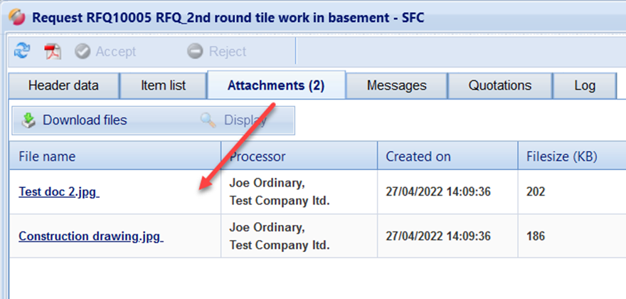 With the button "Download files", you can download all attachments at the same time. To download individual attachments, click on the respective file name, which is displayed as a link.